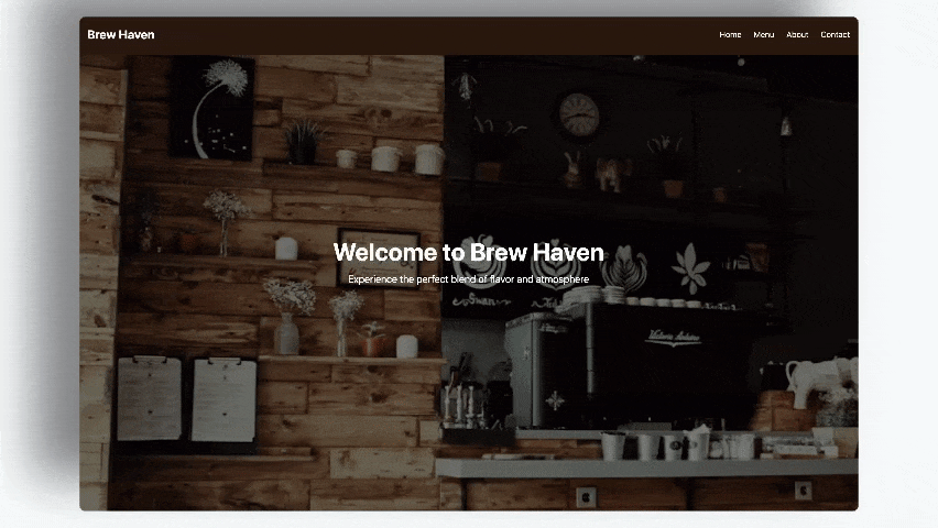 Adding parallax scrolling or other scroll effects is as easy as just adding that to your prompt. Here’s a coffee shop website with a simple prompt: