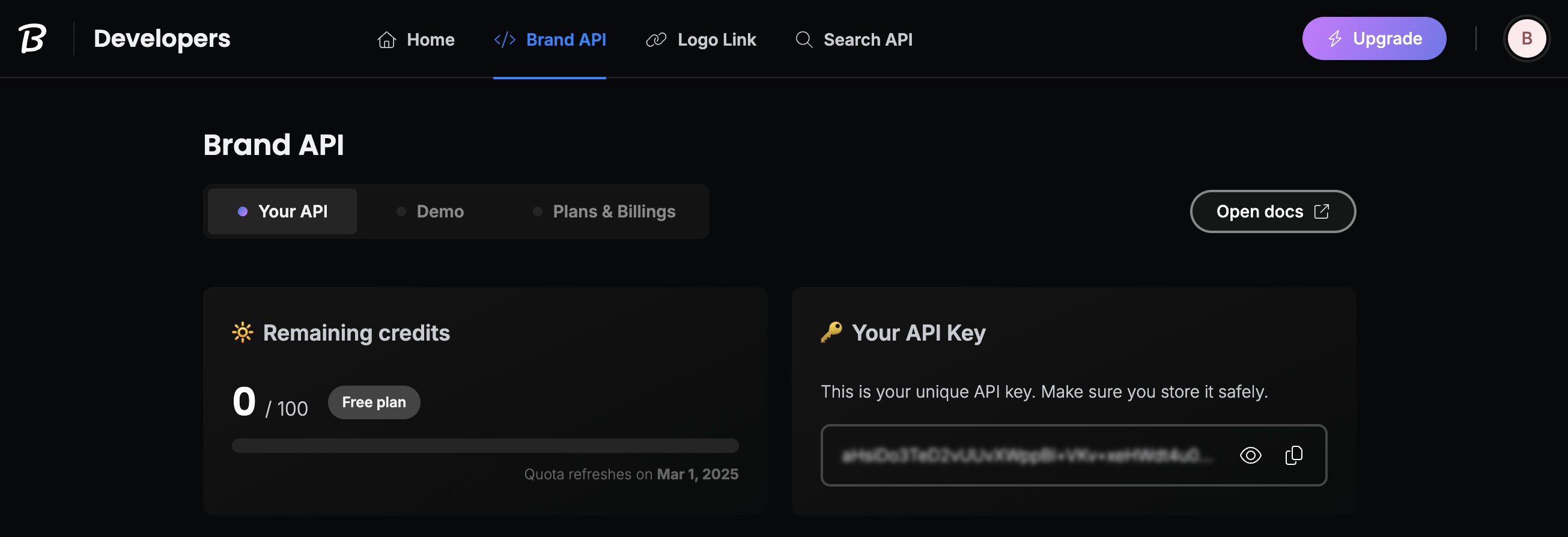 Need a new key? Contact Brandfetch support.