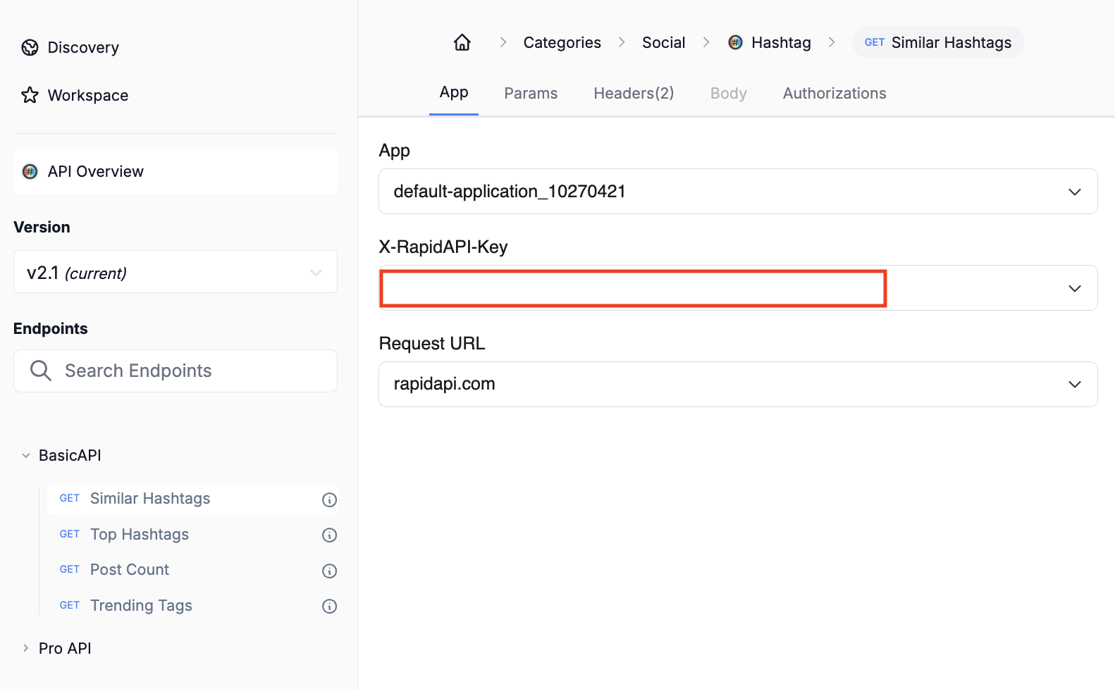 - Navigate to the Hashtag API section