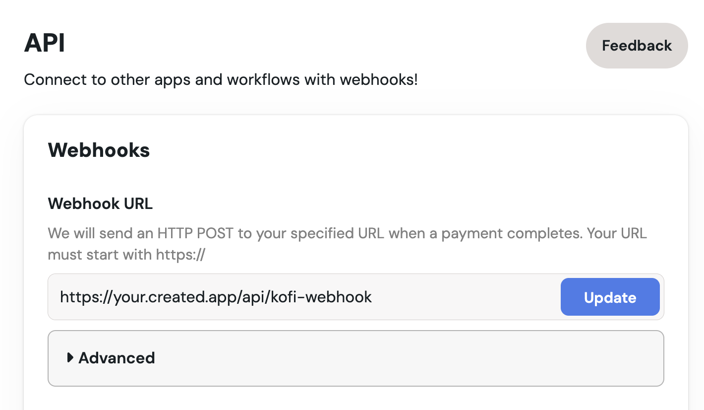 Your Ko-fi webhook is set up! You will now receive notifications for the selected events.